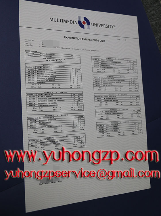 Multimedia University transcript, buy fake dergee of MMU certificate Fake Diploma, Fake Diploma and Transcript, Fake Degree, Buy Fake Diploma, Buy Fake Degree MultimediaUniversity), formerly known as Telekom Malaysia University, is the first officially known as "University" private universities by the Malaysian government in 1997 approved the establishment. Currently, there are school subjects from 64 countries around the world to award bachelor doctorate. Currently, in the capital Kuala Lumpur and the historic city of Malacca is located two campuses, Multimedia University transcript, buy fake dergee of MMU certificate undergraduate and graduate more than 10,006 thousand people.